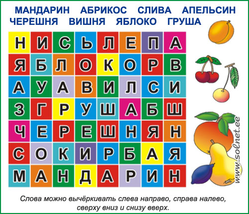 6. Вычеркнув перечисленные названия фруктов-ягод, из оставшихся букв составьте еще одно.