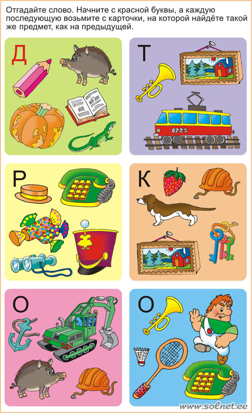 4. Начиная с красного квадрата, прочтите по опорным картинкам мужское имя.